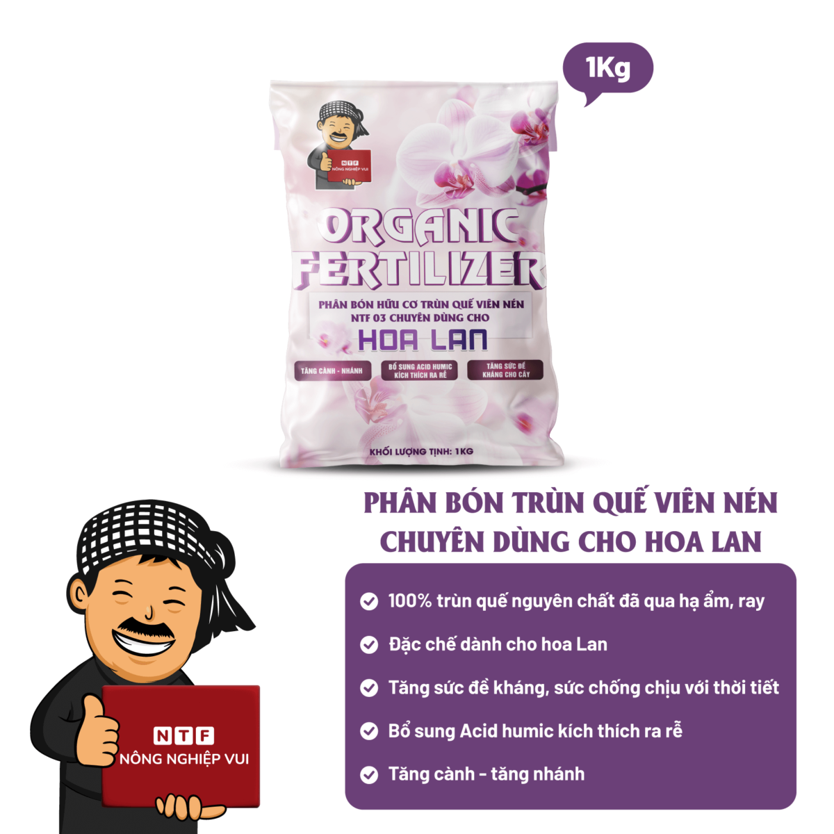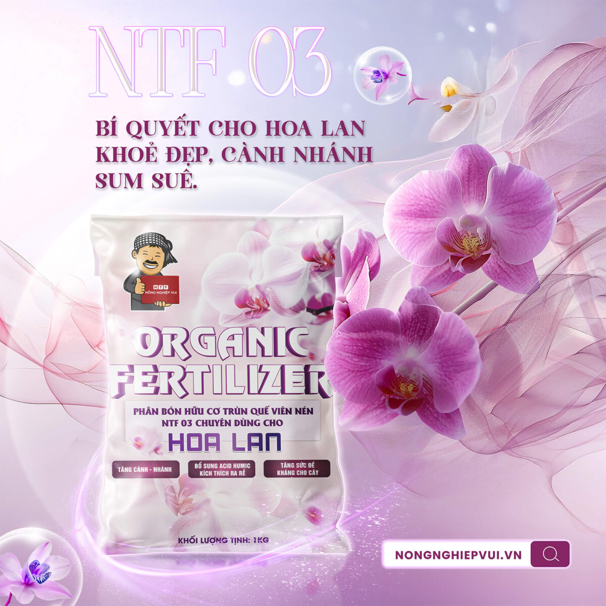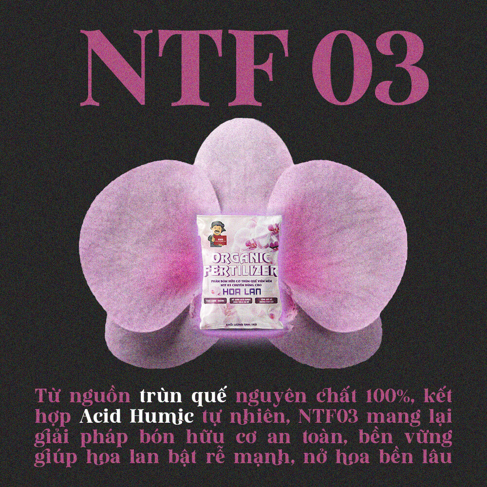 NTF03 là dòng phân bón hữu cơ cao cấp được sản xuất từ trùn quế nguyên chất 100%, trải qua quy trình hạ ẩm, ray mịn và sàng lọc kỹ lưỡng, bổ sung Acid Humic giúp kích rễ, tăng đề kháng và nuôi dưỡng cây trồng phát triển bền vững.