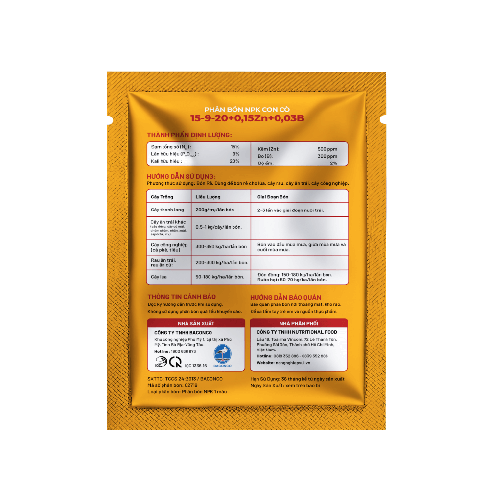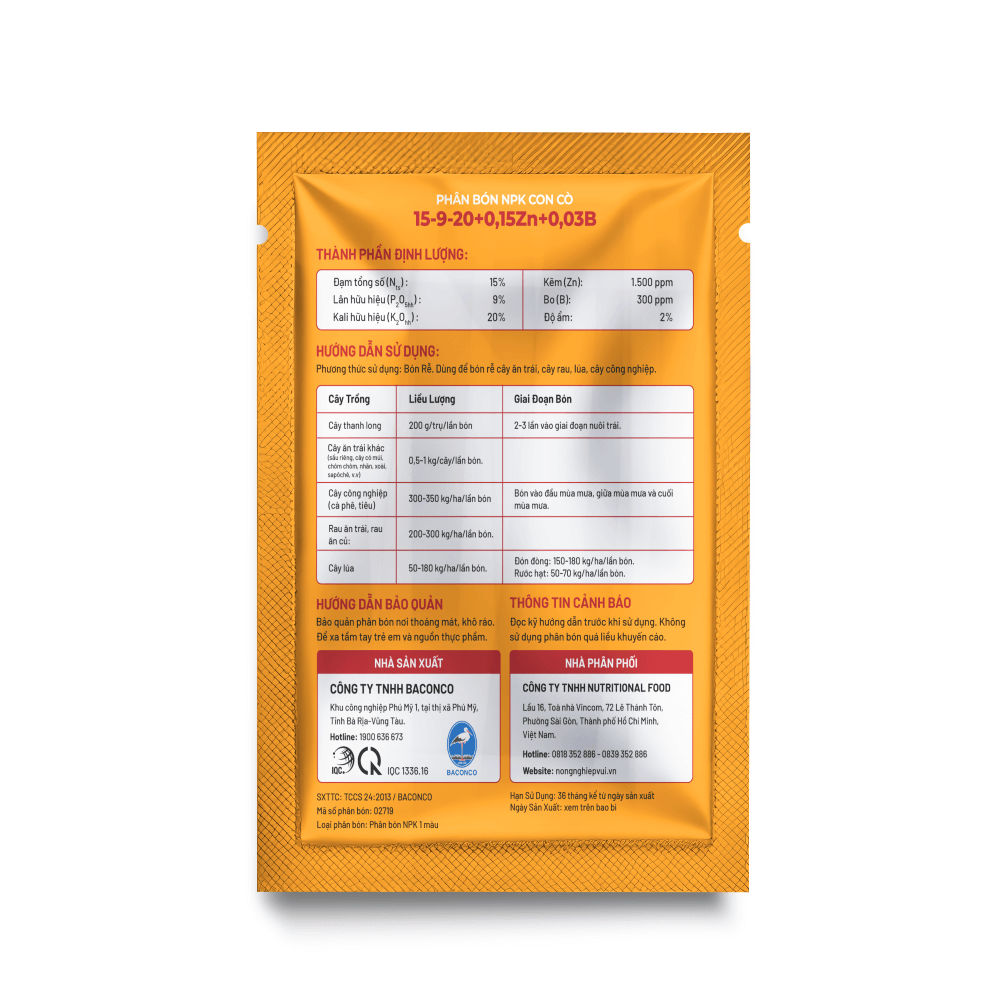 Phân Bón NPK Con Cò 15-9-20+0,15Zn+0,03B