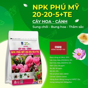 - Sản phẩm 2: Phân bón NPK Phú Mỹ 20-20-15+TE giúp sung chồi, bung hoa, sai quả.